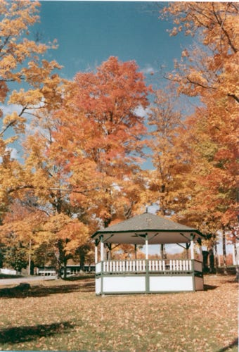 We pass a beautiful church, more fall colors of trees, and a quaint gazebo.