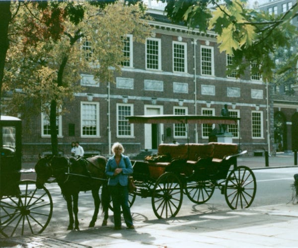 The next day we drove downtown and toured the area. When Bill and Nancy took their trip, the Liberty Bell was in a glass pavilion across Chestnut Street from Independence Hall. Nancy was able to touch the “Liberty Bell,” because they only had a small area roped off. In 2003 the Liberty Bell was moved to Liberty Bell Center, which has an interpretive exhibit and a large window that allows visitors to see it against the backdrop of its old home, Independence Hall.