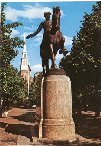 A beautiful statue of Paul Revere graces a small park in front of the Old North Church.