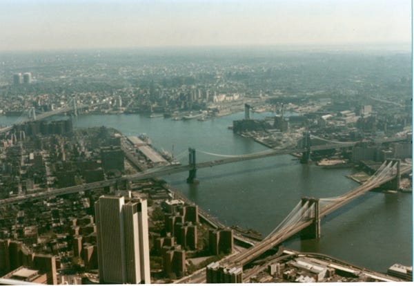 From the viewing platform, we took photos of the Brooklyn and Manhattan Bridges, a view of the Empire State Building and downtown, and another view of the Statue of Liberty in the Harbor. A spectacular view of the Twin Towers glistening with the sun on them from the boat tour we took to see the Statue of Liberty.