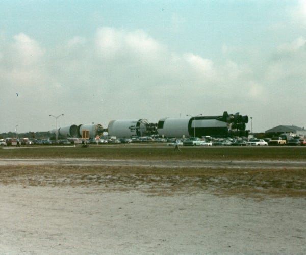 A photo of the rocket assembly building, and the world’s most powerful rocket “The Saturn.”