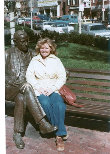 As we walk around the area there is so much to see, here is a photo of Paul Revere’s house; the oldest frame house in Boston built in 1770. Downtown Boston and Nancy is sitting next to the mayor of Boston James Michael Curley. A policeman on his horse in downtown.
