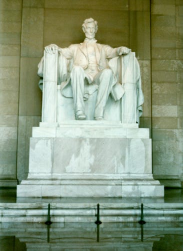 A photo of the Lincoln Memorial, and President Lincoln, and another monument. The Jefferson Memorial was built between 1939 and 1943.