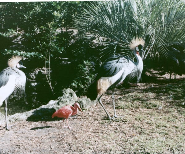 Several pictures of different birds in the park. As we walked around the park we saw many large Alligators, and large Cypress trees with moss.