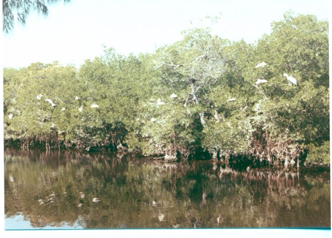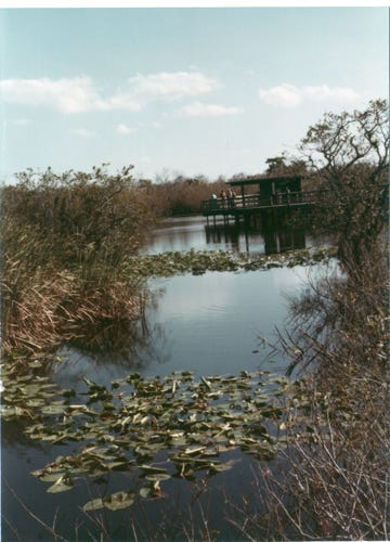 The next photo is of a marsh called “Marl Prairie.” These large areas of freshwater marl prairie border the deeper slough of the Everglades. The marl allows slow seepage of the water but not rapid drainage. The sawgrass is not as tall and the water is not as deep, freshwater marl prairies look a lot like freshwater sloughs.