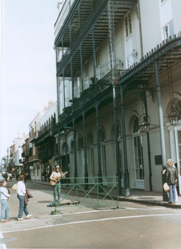 Here, we are a Jackson Square where they had an outdoor market, and a singer on the street in the French Quarters.