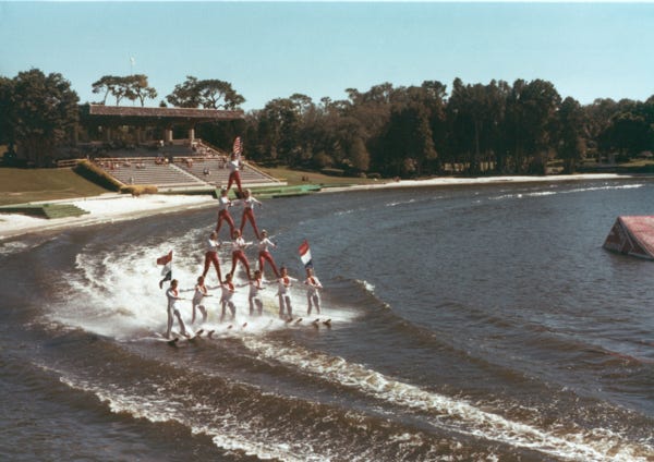 The last photo is the world’s first four-tier pyramid performed by the water skiers at Cypress Gardens.