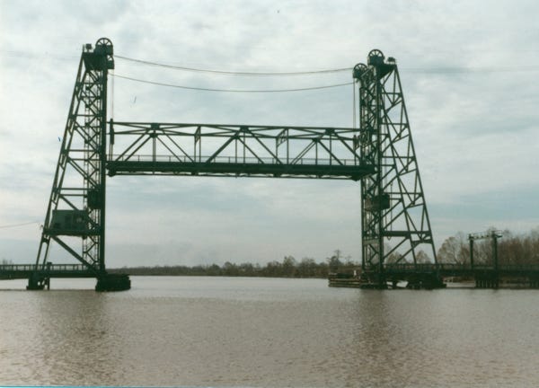 We took the riverboat Natchez on the Mississippi River to the lock to the inland waterway through “Bayou Country.” Along the Bayou and, a large draw bridge.