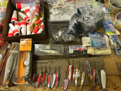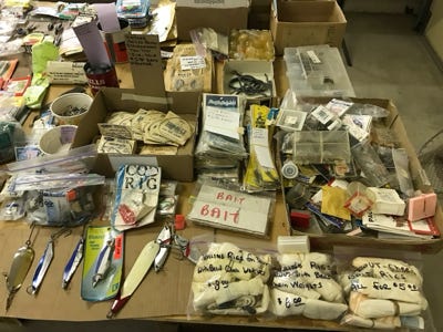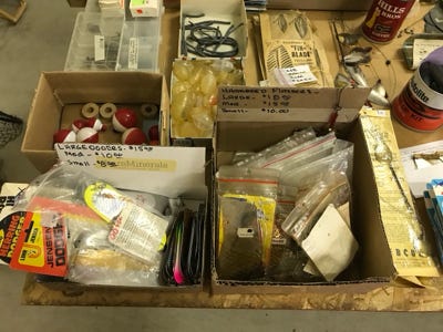 From the photos above you will see many boxes of weights, leader material, hooks, floats, and so we are not listing the amount of each item, but we have a lot.