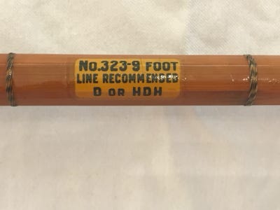 Unmarked Split Bamboo - 9’, this is in a Heddon bag, but can’t find any identification on the rod, 3 pieces with 2 tips, excellent condition.